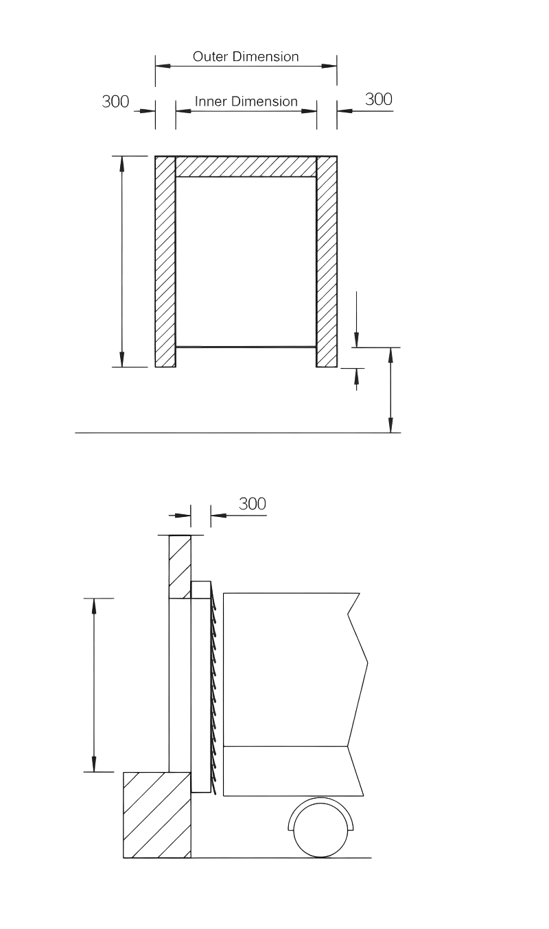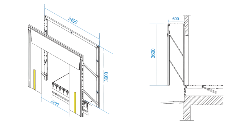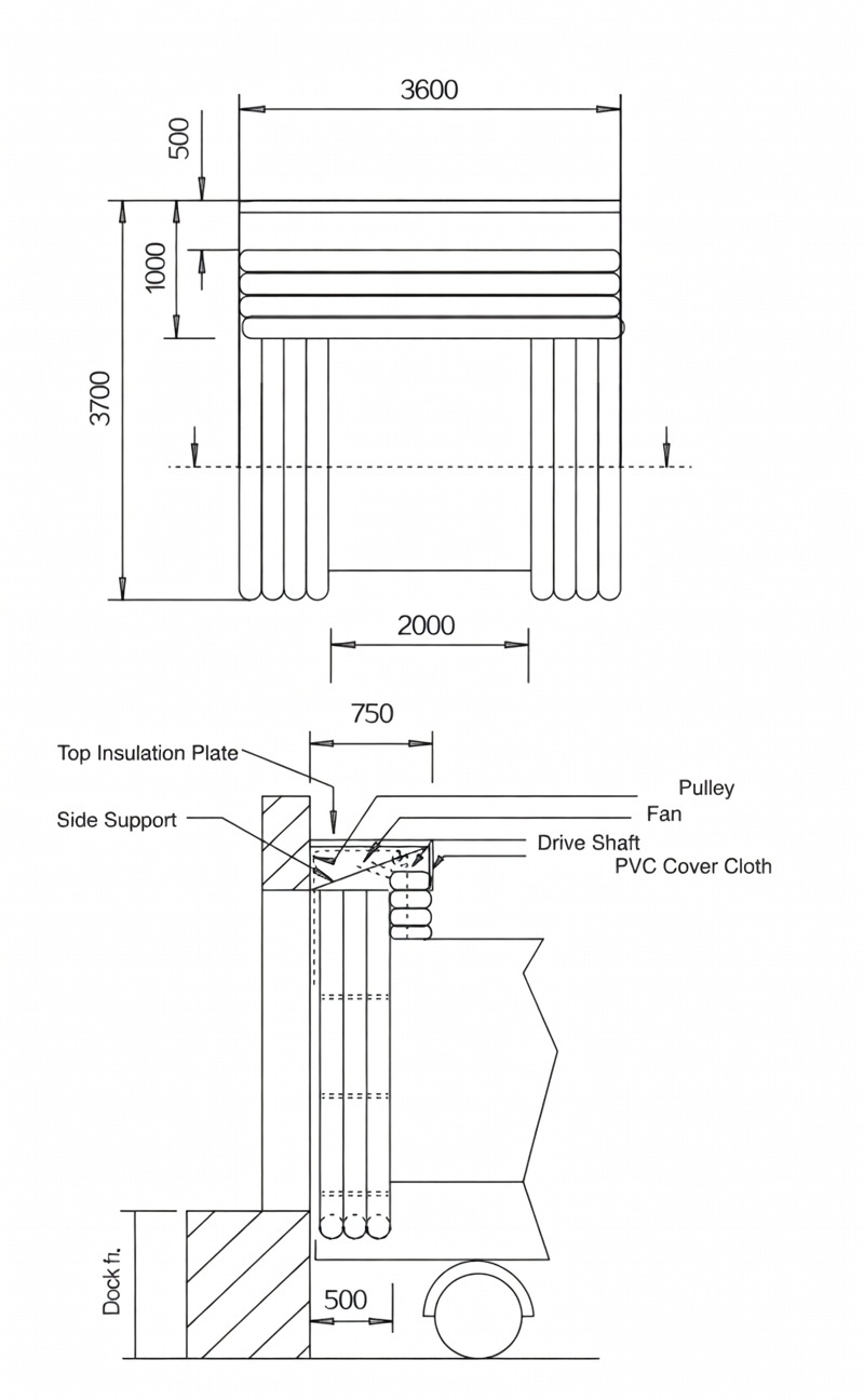 Maximum door width is 3000mm. When the dock height is 1200mm, the dock shelter is suitable for trucks with a top height ranging from 3500mm to 4300mm.
