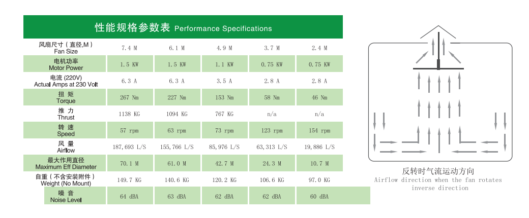 - Airflow volume up to nearly 400,000 cubic feet per minute