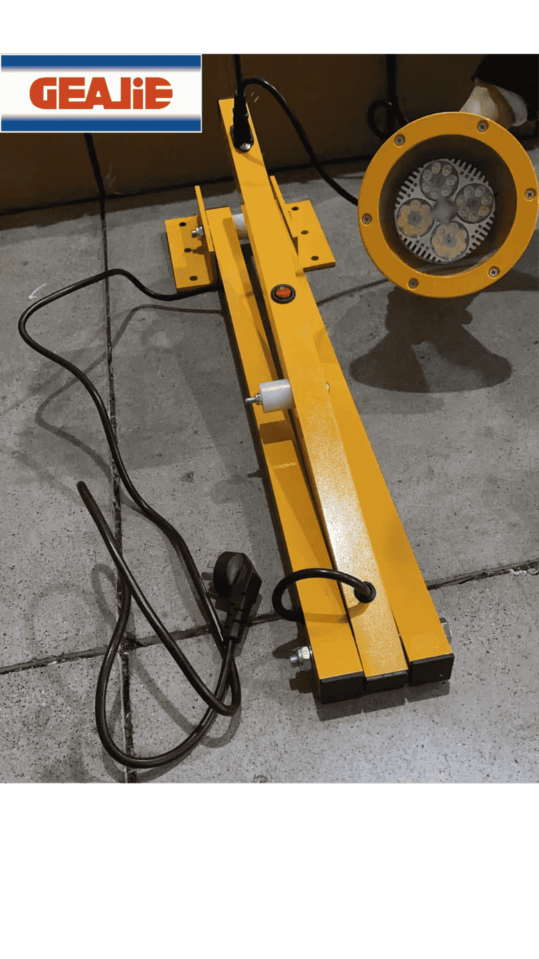 GEAJIE LED explosion-proof lighting lamp features a lightweight and durable aluminum alloy foldable stand with rust and corrosion resistance. Equipped with a 35W waterproof aluminum alloy lampshade and a 30-meter illumination range, it is ideal for emergency and work lighting in hazardous explosive environments such as oil depots, chemical plants, mines, and tunnels.